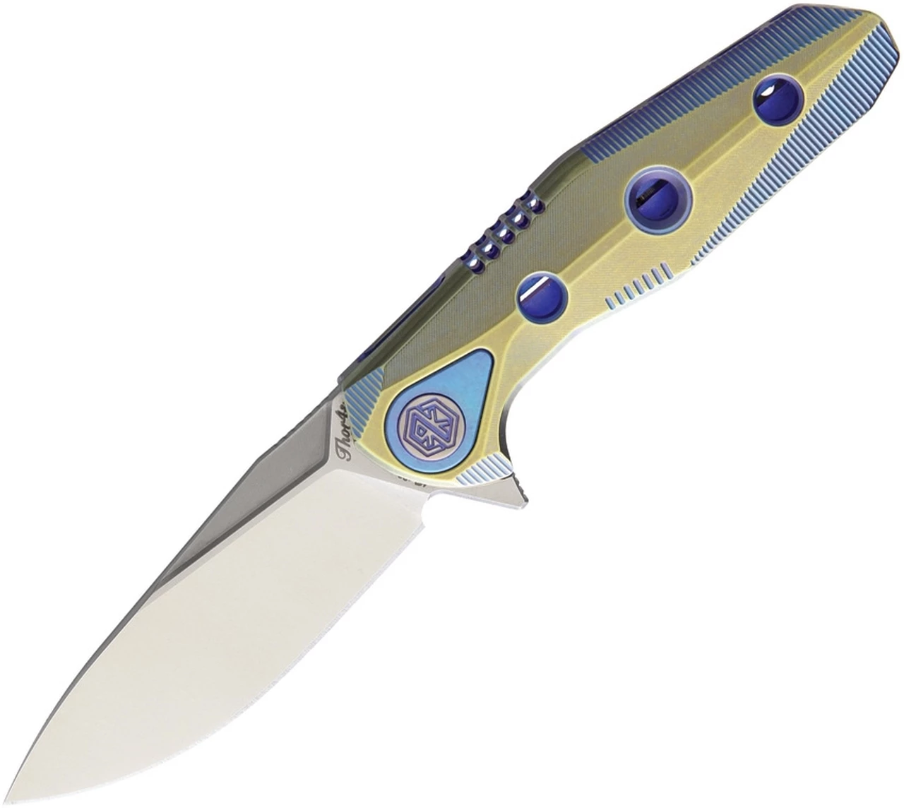 Rike Knife Thor4 Framelock, Gold/Blue Titanium