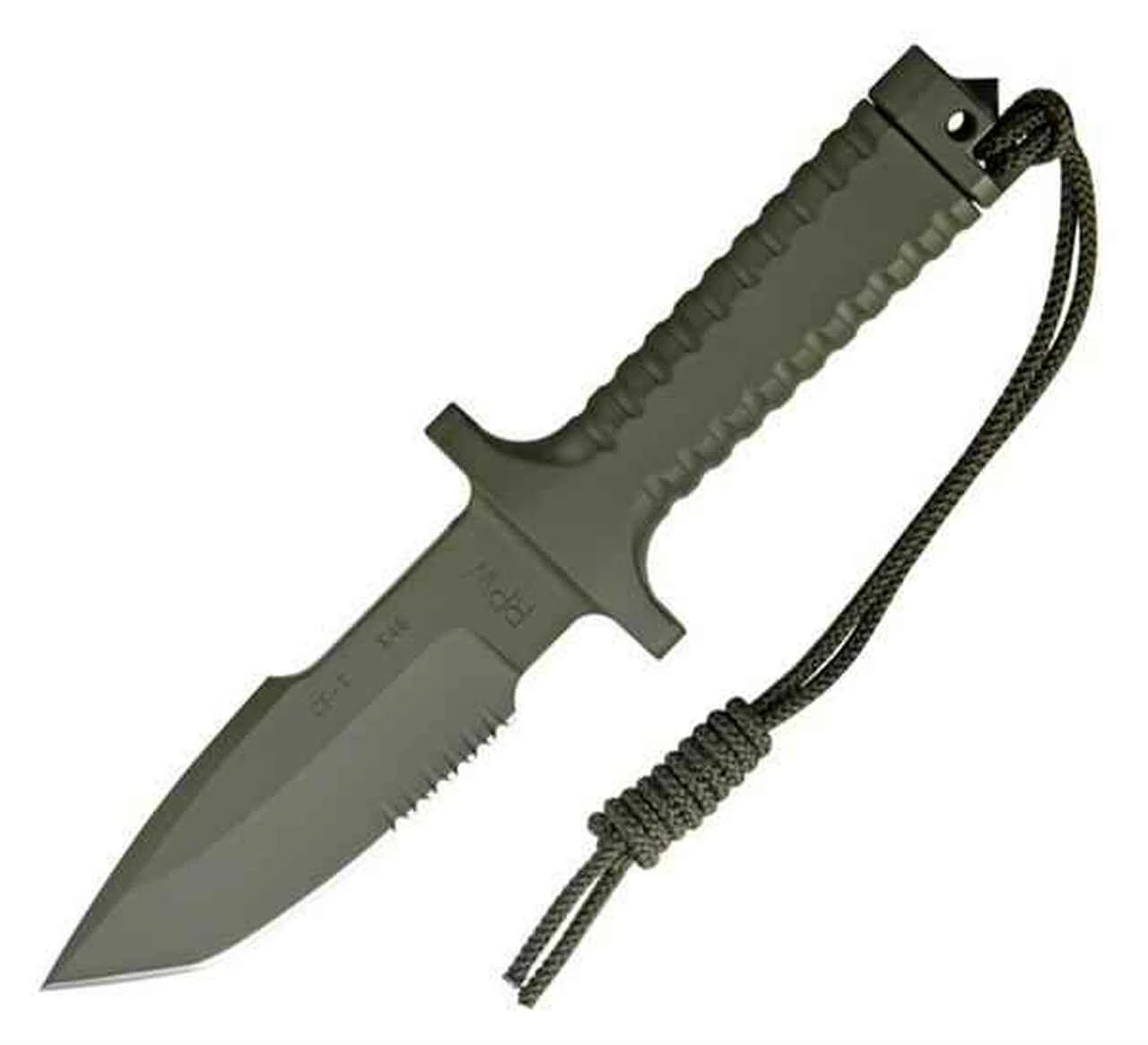 RPW X46 5″ Tanto OD, Combo Edge, w/ Khaki Nylon Sheath