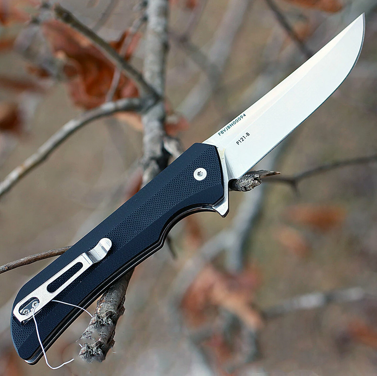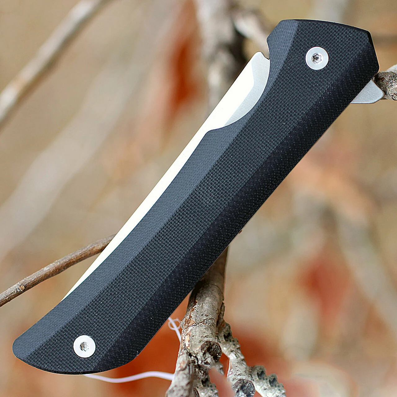 The long drop point blade makes the Hussar an exceptionally distinctive pocket knife. The comfortable, skid-proof G10 handle performs well in the harshest of elements. The blade can be deployed much faster with the flipper.