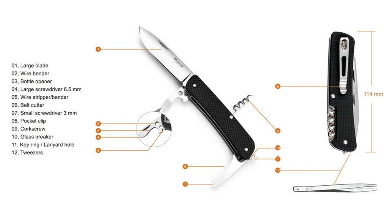 Ruike L21-B Criterion Collection, 3.35″ 12C27 Plain Blade, Black G-10 Handle