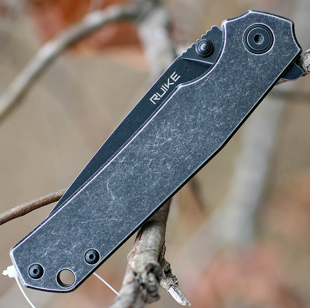 Ruike P801SFB, 3.4″ 14C28N Plain Blade, Black Stonewashed Stainless Handle
