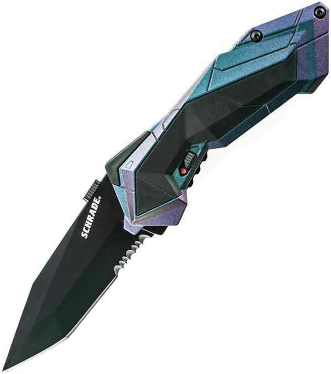 Schrade MAGIC, Black Tanto Blade, Spring Assisted, Chameleon Handle, Combo Edge