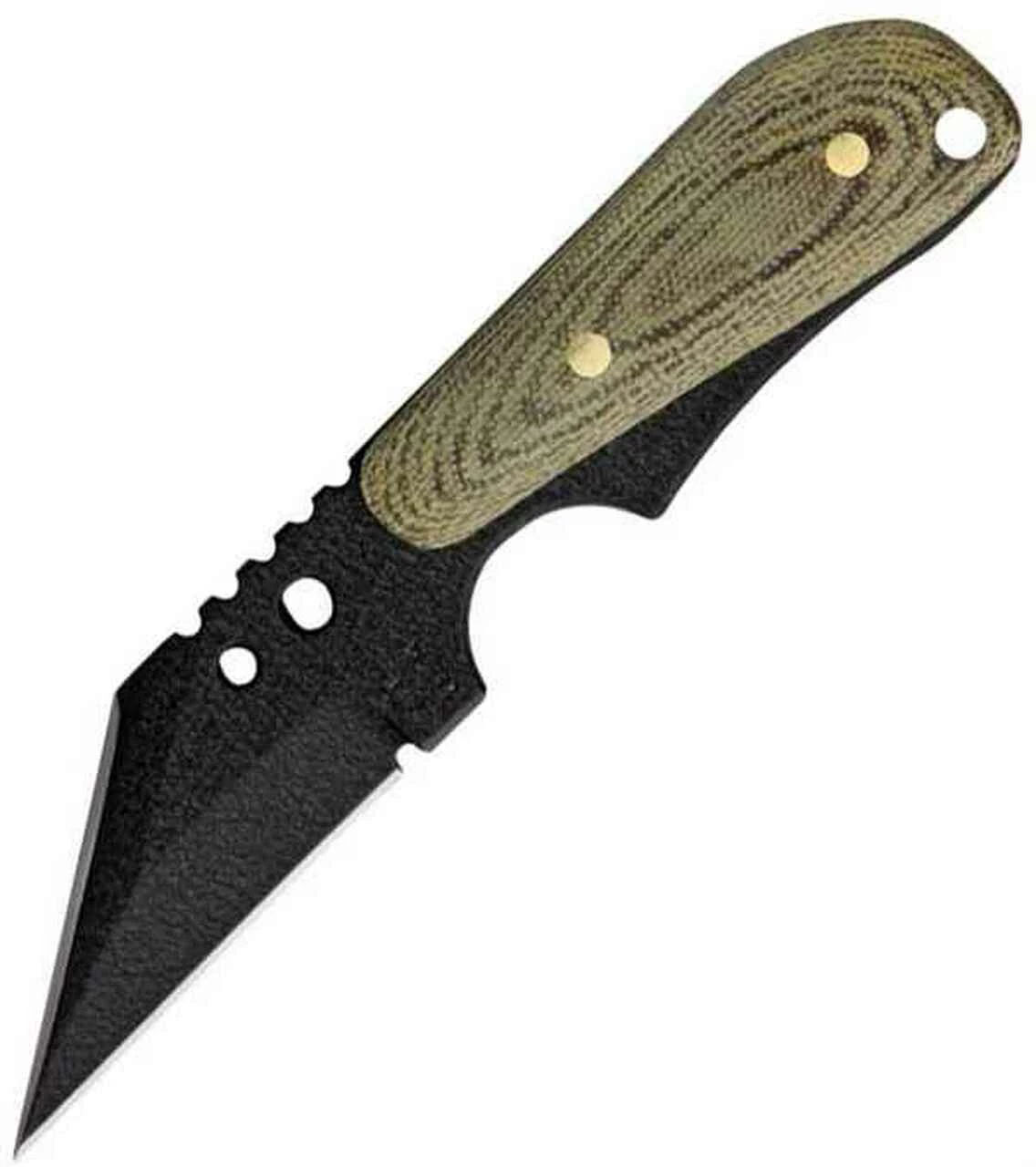 Shadow Tech Raptor 1. 7″ overall. 3 1/2″ 1095 high carbon steel blade with black powder coat finish. Blade is sharp on top and has extreme point. Full tang. OD green canvas micarta handles. Molded black Kydex sheath with horizontal, vertical and 45 degree draw option.