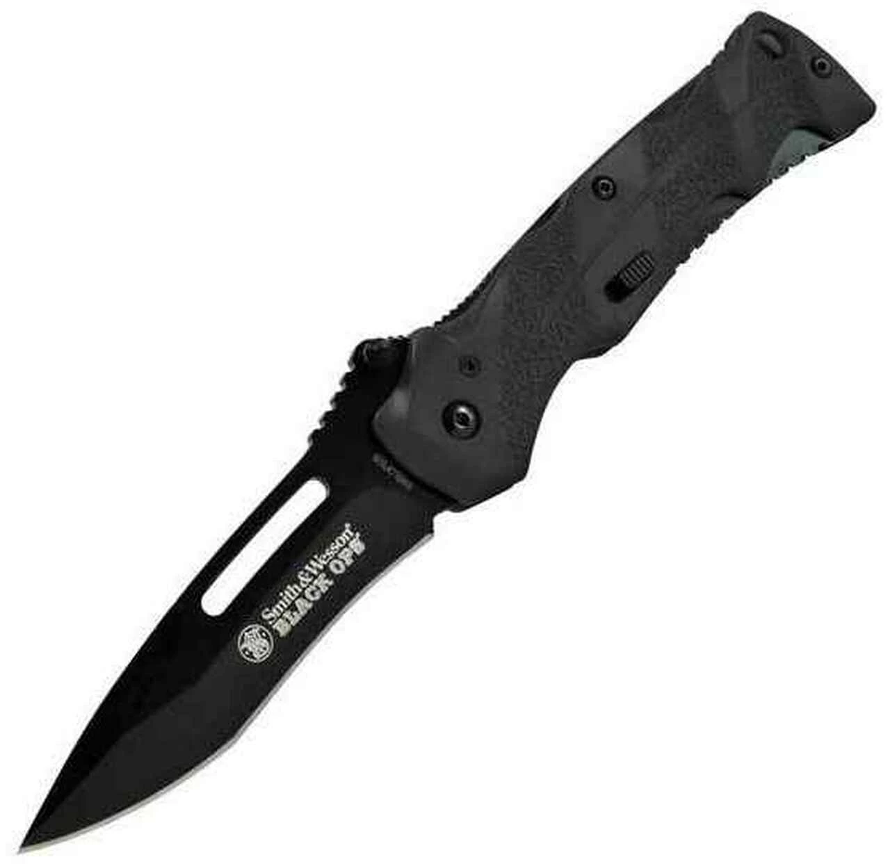 Smith & Wesson Black Ops 2, Black Aluminum Handle, Black Blade, Plain Edge