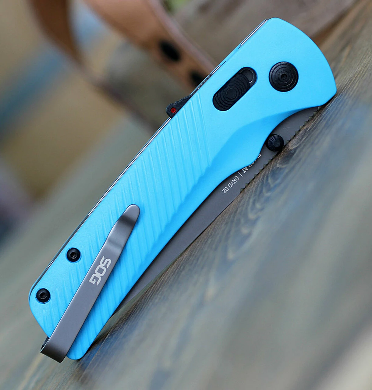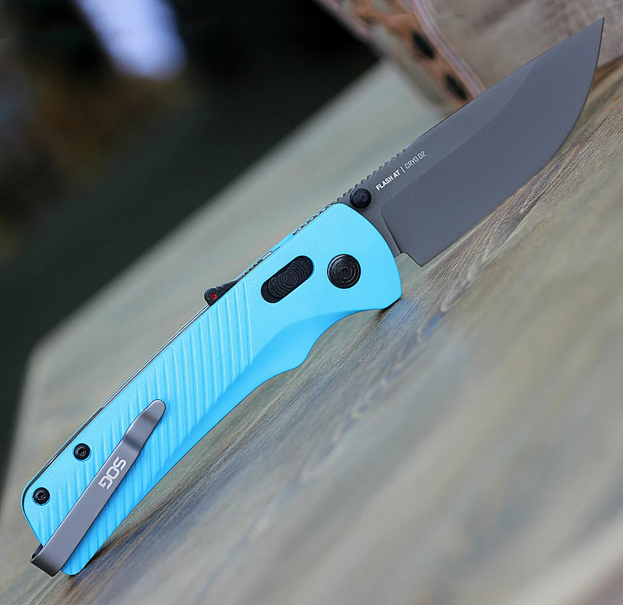 Designed for everyday users, Flash AT features rapid assisted opening with SOG’s innovative ambidextrous AT-XR Lock and streamlined ergonomic handle design for enhanced grip and comfort. Flash AT is compact and easy to carry, with a highly functional 3.5″ cryogenically heat-treated D2 stainless steel blade. Its powerful XR locking mechanism also features reliable built-in blade locking safety and spine-mounted safety system. The next evolution of the popular Flash. The latest update to SOG’s ubiquitous and top-selling Flash design, Flash AT is designed as a reliable daily carry knife. For those that want to be prepared for whatever comes their way, Flash is the perfect EDC. When you head out for the day, everything in your pocket should be essential. Flash AT fits in perfectly with your daily carry, delivering a highly reliable and versatile tool that’s slim enough to fit in your pocket. Balancing modern design with heavy-duty performance and reliability. Flash AT has a sleek deep-carry clip and streamlined ergonomic handle.