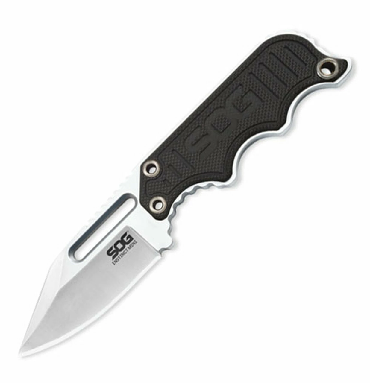 Sog Mini Instinct, NB1002-CP, Satin Clip Point, Black G-10 Handle, Fixed Blade 4.8″