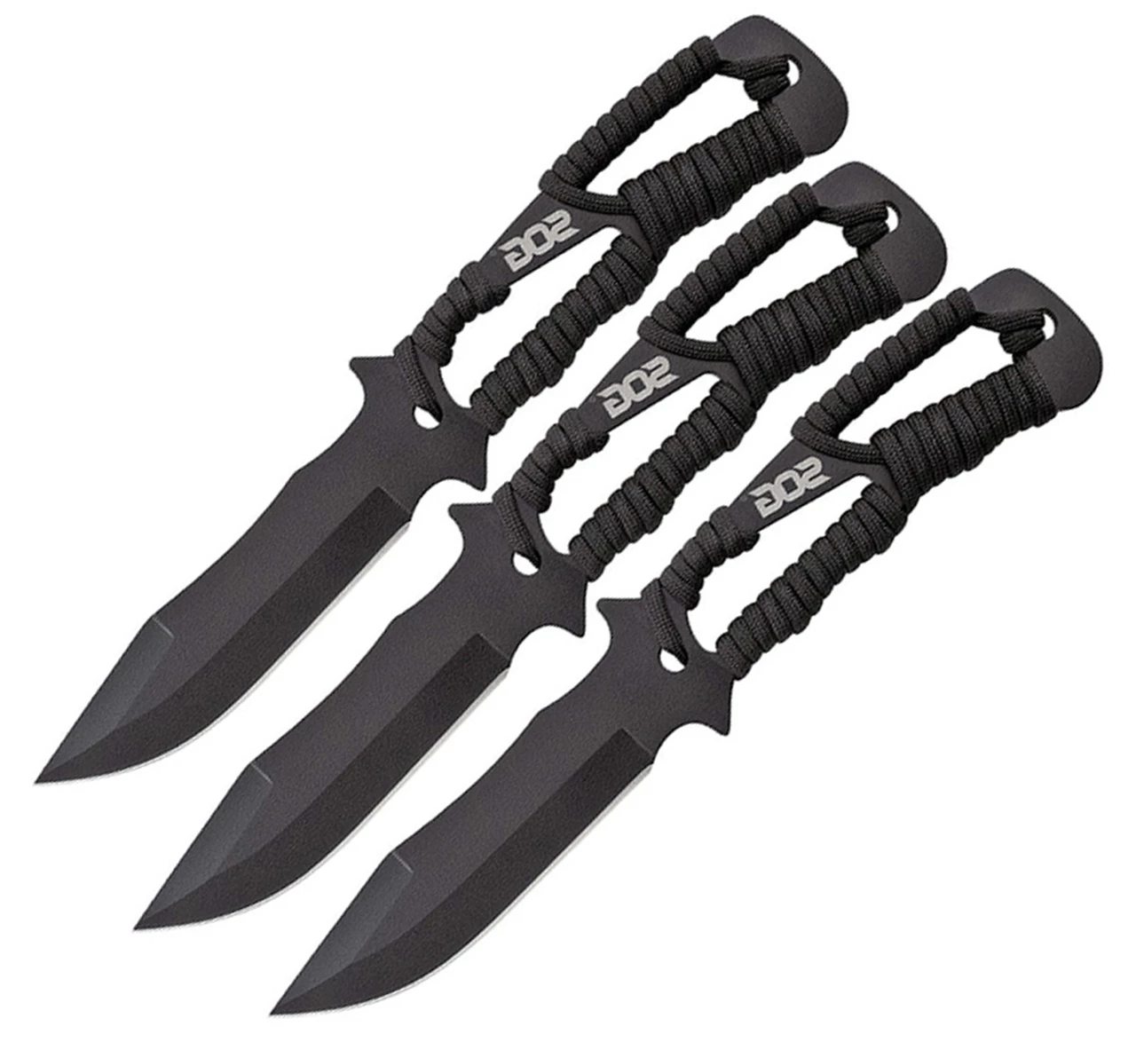 Protected by SOG’s hardcased black coating, they are extremely scratch resistant. Their balance, aerodynamics, and proportions make them great throwing knives. For the same reasons, they also make great back-up field knives. Handles are wrapped with paracord or use without it and you have three knives for the price of one! Includes nylon sheath that safely carries
