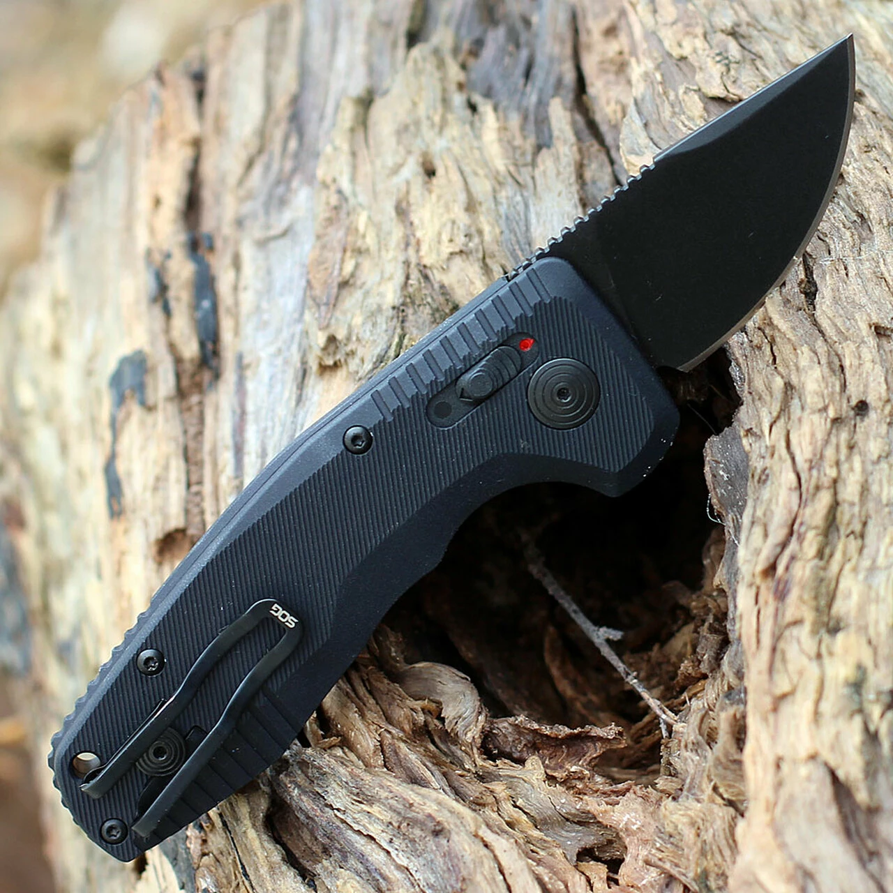- Innovative blade lock-out that allows you to go from safe to blade open in one pull, with SOG’s Double-action Safety.