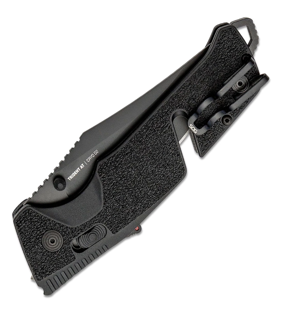 Designed for professional users, Trident AT features rapid assisted opening with SOG’s innovative ambidextrous AT-XR Lock, as well as integrated line cutter and glass breaker. Trident AT is easy to carry, with a highly functional 3.75″ cryogenically heat-treated D2 stainless steel blade. Its powerful AT-XR locking mechanism also features built-in blade locking safety and spine-mounted safety system. The next evolution of the field-proven Trident.