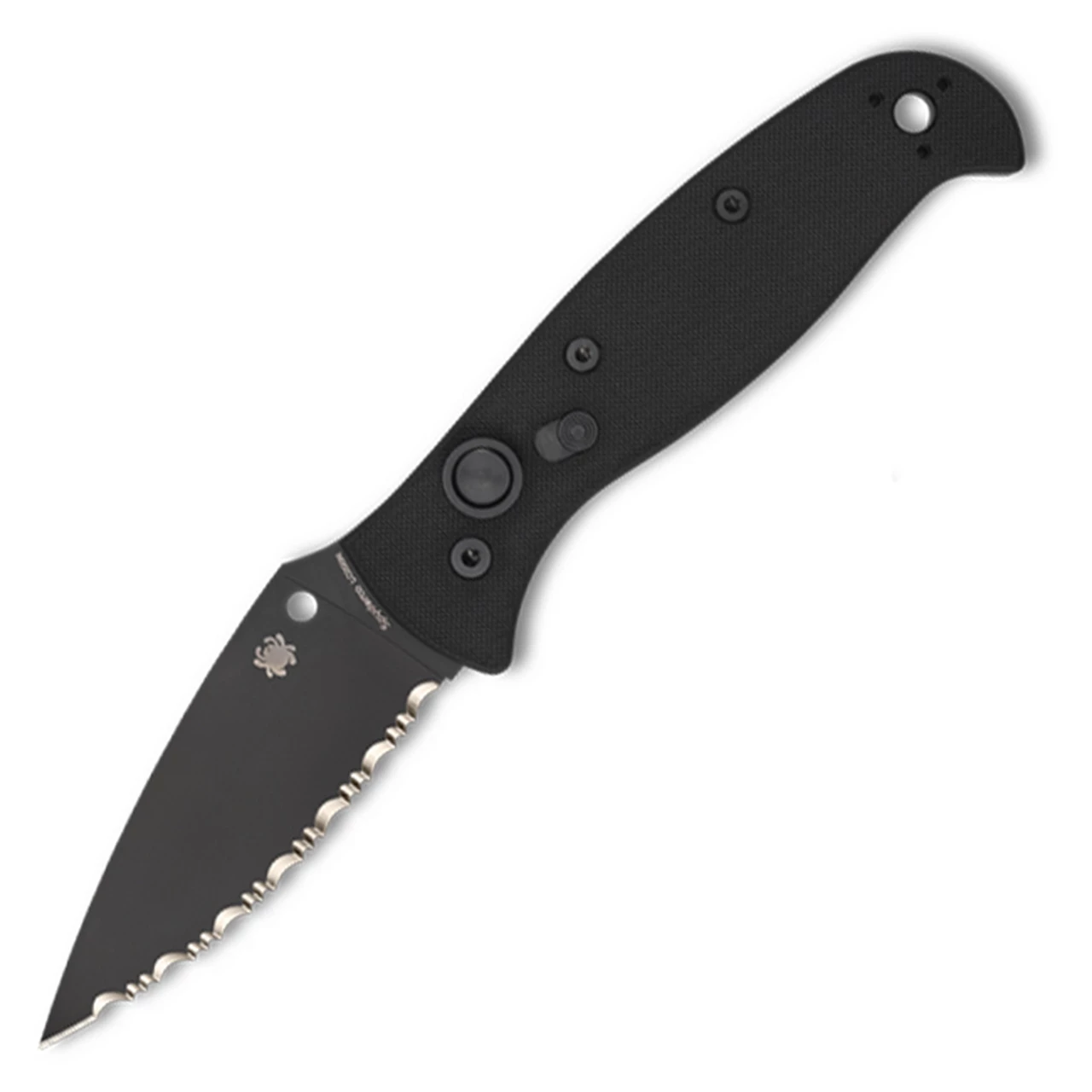 Spyderco Autonomy 2 Automatic Knife (C165GSBBK2) – 3.5″ LC200N Black DLC Full Serrated Blade, Black G-10 Handle