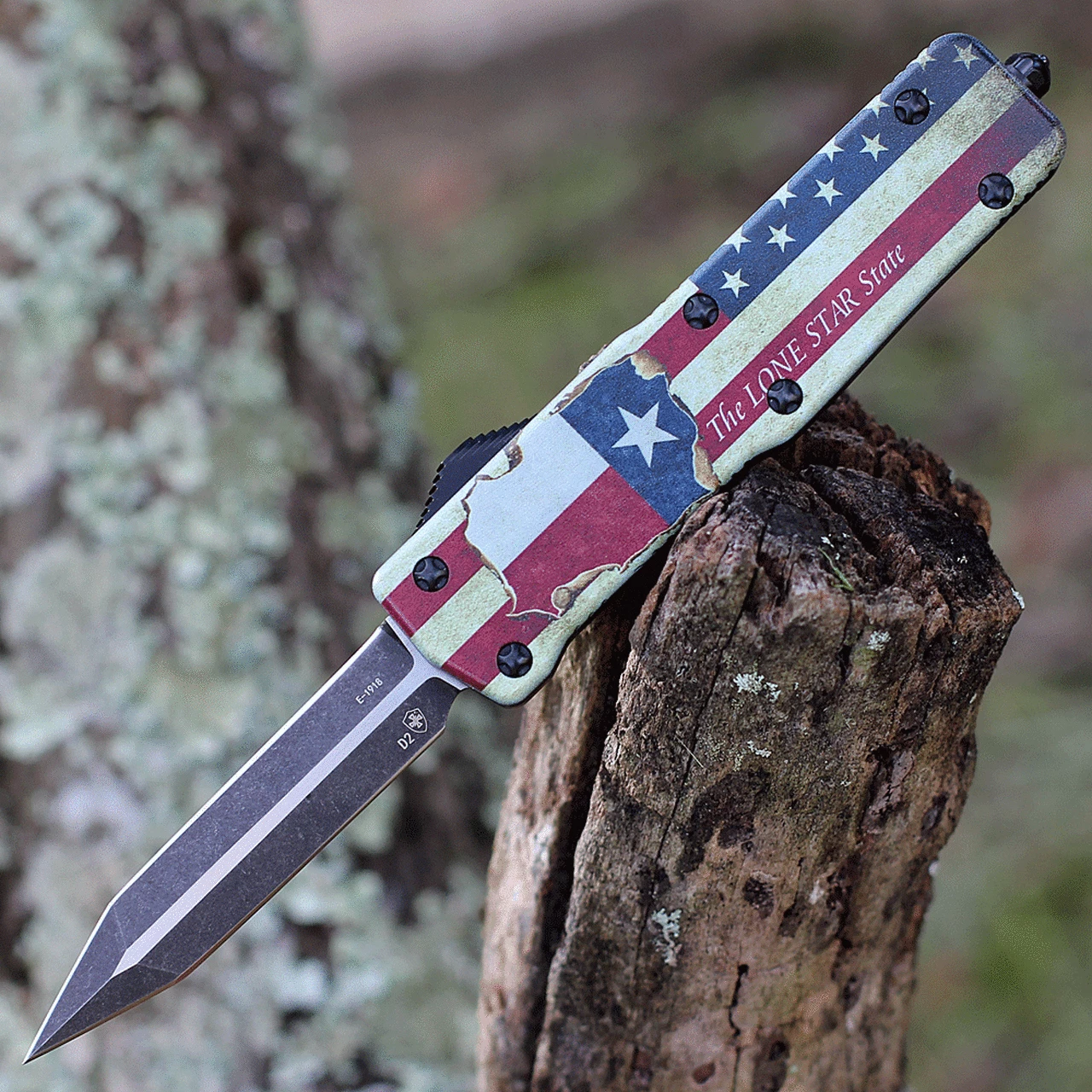 Templar Knife Premium Lightweight Series – Small OTF Automatic (SA-TX-12-1) – 3″ Powder D2 Black SW Dagger, Aluminum Texan “The Lone Star State” Handle