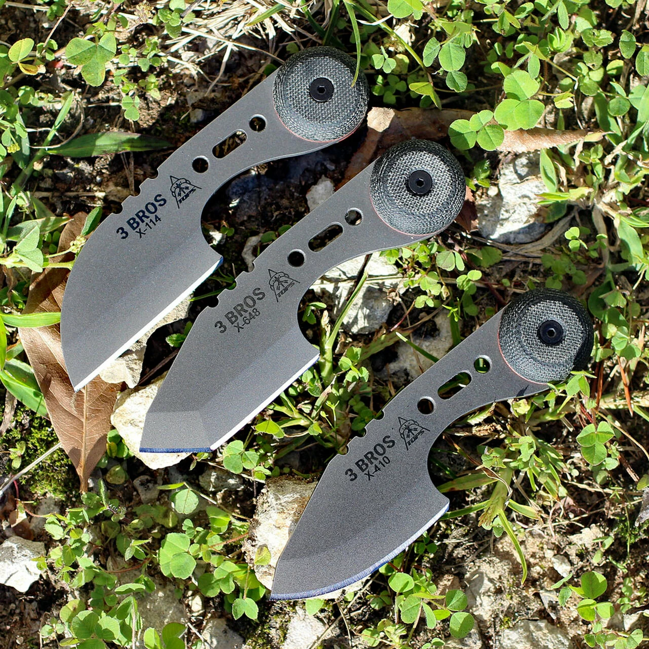 TOPS 3 BROS COMBO PACK, 2″ 1095 CARBON STEEL BLADE’S, BLACK MICARTA HANDLE, KYDEX SHEATH