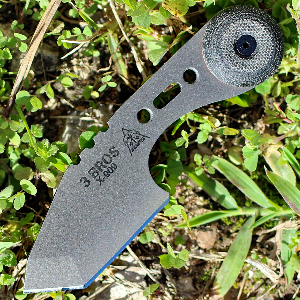TOPS 3 BROS TANTO, 2″ 1095 CARBON STEEL BLADE, BLACK MICARTA HANDLE, KYDEX SHEATH