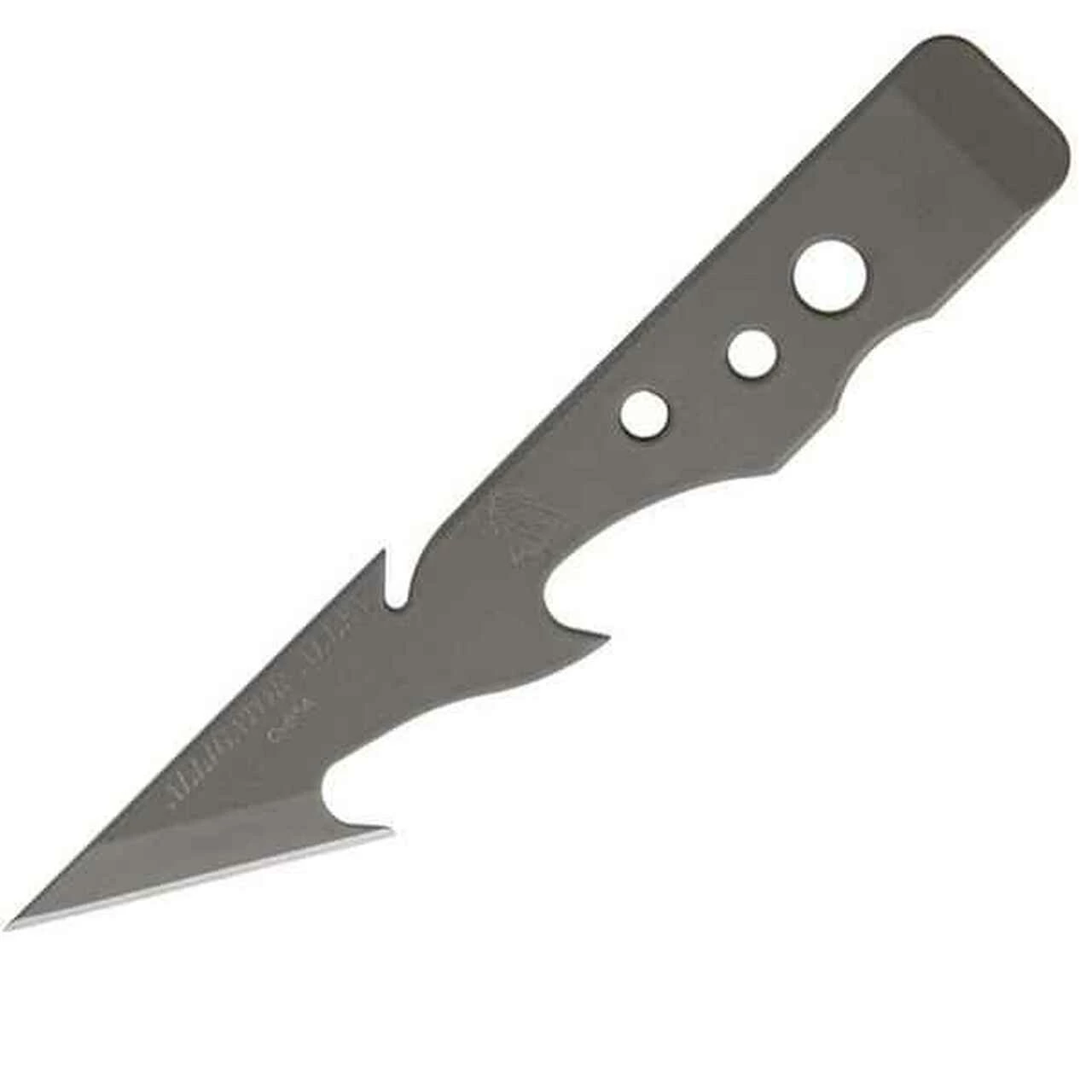 TOPS Alligator Alley. 6 7/8″ overall with a 2 1/8″ blade on one end and a pry bar on the other. One piece 1095 carbon steel construction with finger grooved handle. May be used independently or used with a handle (not included) to create a spear. Black Kydex sheath. Certificate of authenticity.