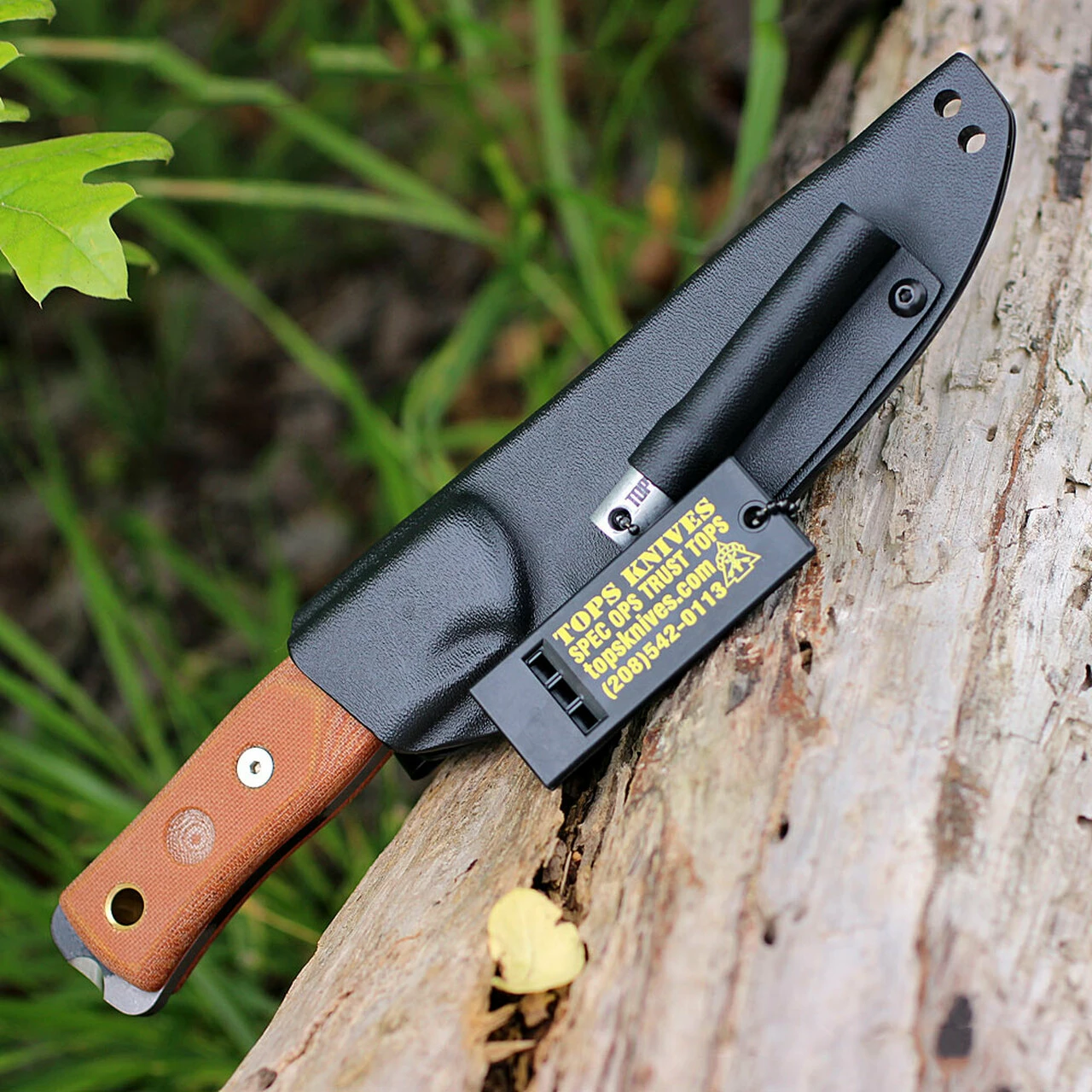 TOPS BROS-01C B.O.B. Fieldcraft CAMO, 4.75″ 1095 Camo Plain Blade, Tan Micarta Handle-Kydex Sheath