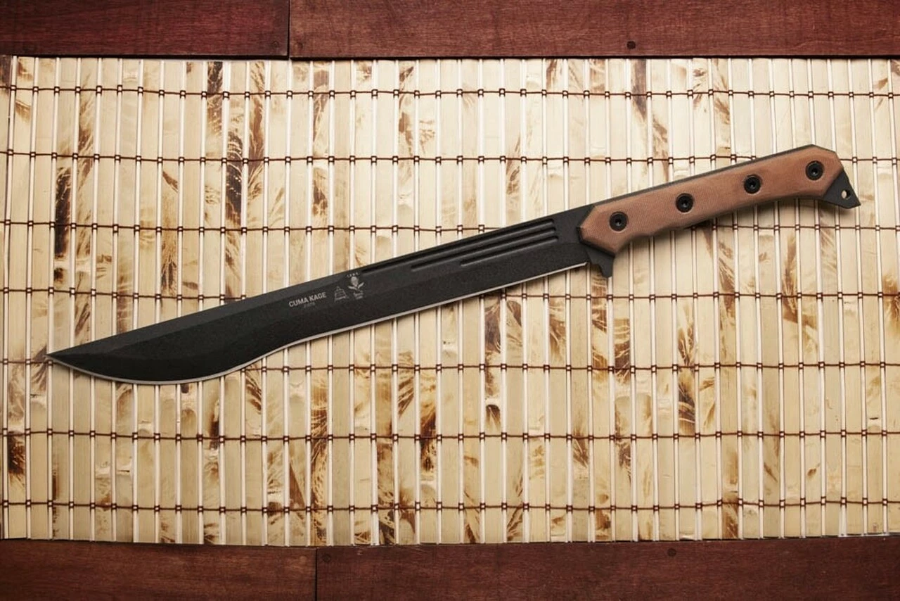 TOPS KAGE-01 Cuma Kage 15.50″ 1095 Black Traction Coating, Tan Canvas/Black Micarta Handles