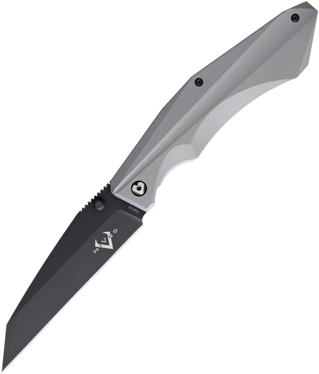 V Nives 30053 Ti-Sportster, 3.75″ Black 154CM Plain Blade, Gray Titanium Handle