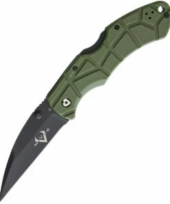 V Nives 30190 Rocky, 3.25″ Black D2 Plain Blade, Green FRN Handle