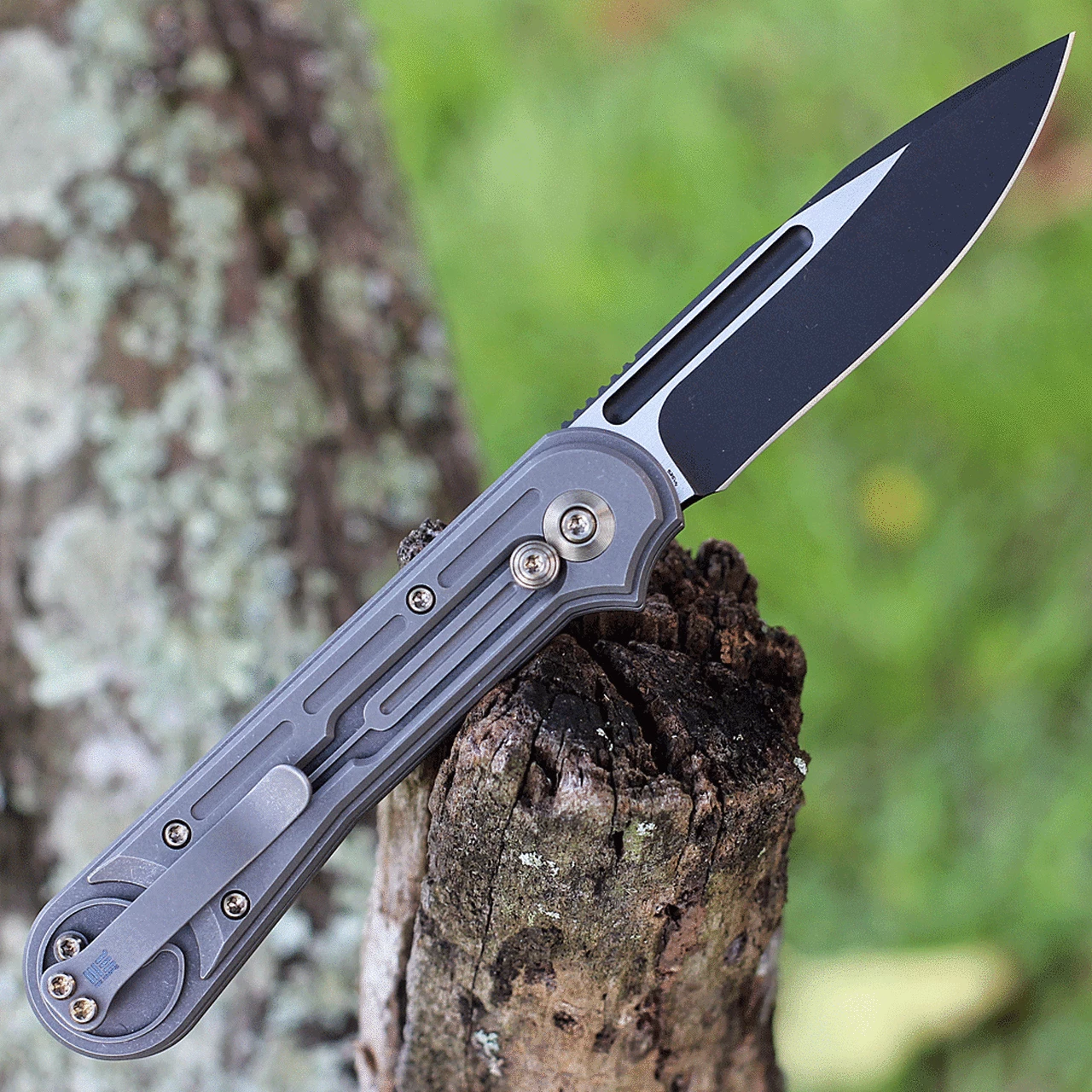 The WE Knife Co. Double Helix combines a futuristic aesthetic with a practical blade profile and a patented Slide Lock mechanism to create a truly unique EDC folding knife. This model is built with a titanium handle and a S35VN blade. Disengaging the Slide Lock allows easy one-handed opening and closing. The Double Helix will appeal to anyone who’s looking for something a little out of the ordinary.