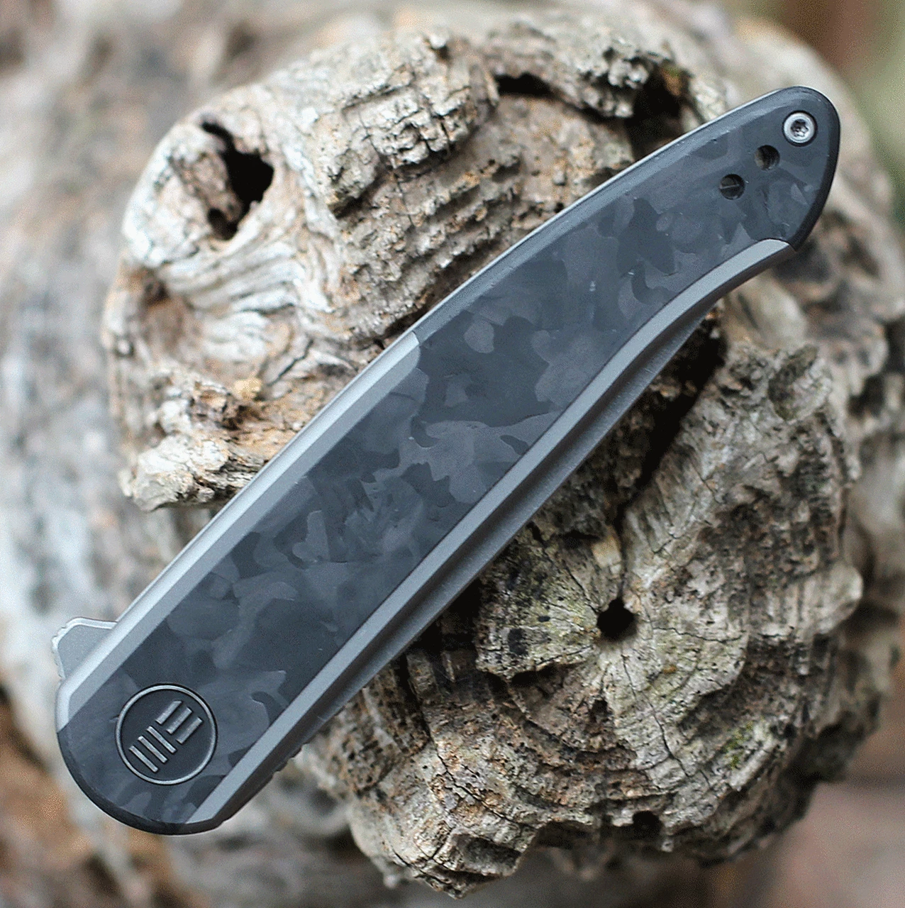 WE Knife Co. Smooth Sentinel Frame Lock Knife (WE20043-1) – 2.97″ Gray Stonewashed CPM 20CV Drop Point Blade, Gray Titanium Handle with Marble Carbon Fiber Inlay