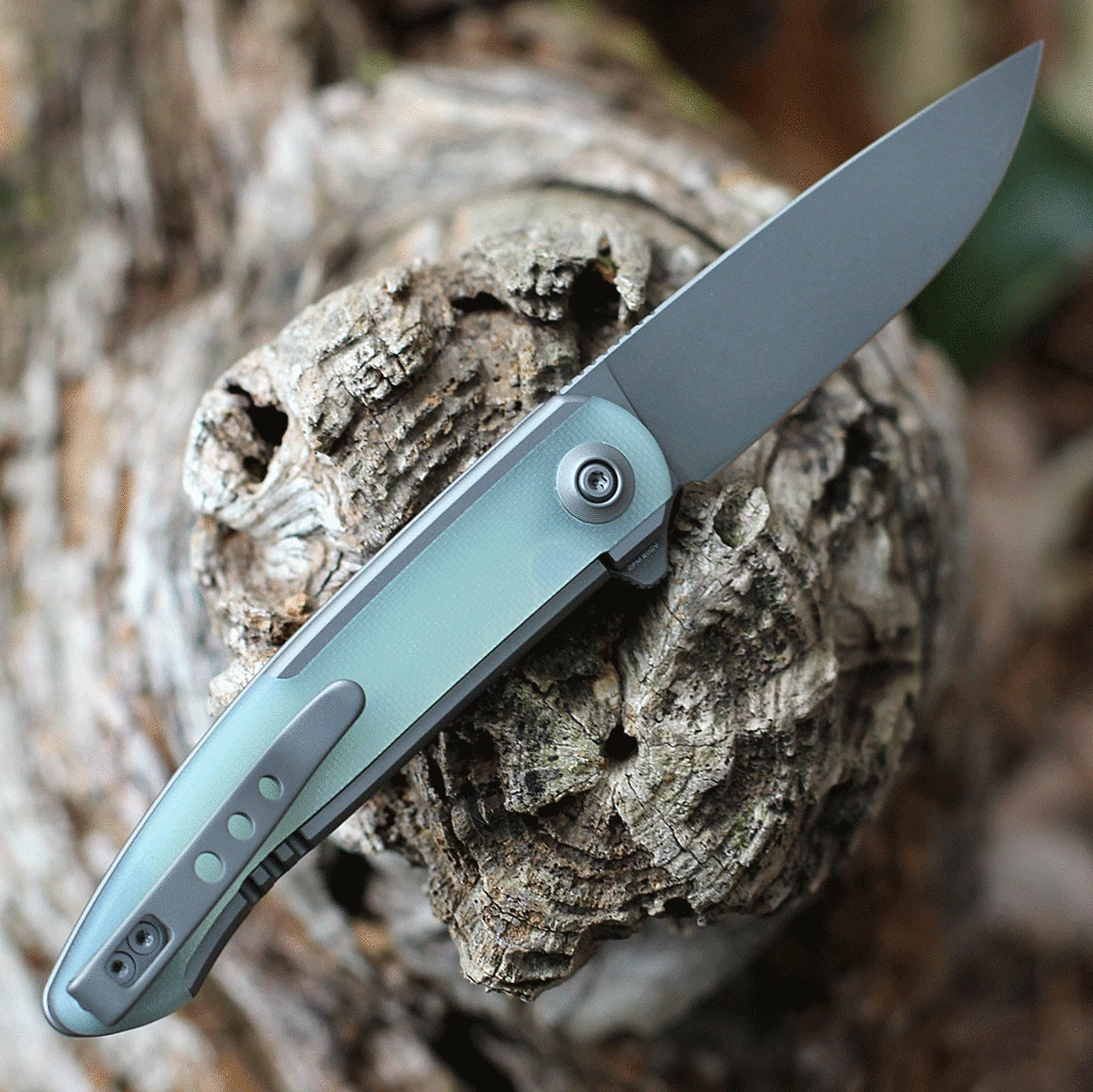 WE Knife Co. Smooth Sentinel Frame Lock Knife (WE20043-2) – 2.97″ Gray Stonewashed CPM 20CV Drop Point Blade, Gray Titanium Handle with Natural G-10 Inlay